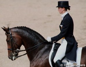 Tina Konyot on the Danish warmblood stallion Calecto V (by Come Back II). The V does not stand for the Roman number 5 but for Viegaard, the stallion station he came from.