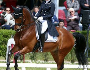Beatrice Buchwald on the Westfalian stallion Den Haag (by Diamond Hit x Florestan I). The horse worked well in trot, showed an outstanding walk but failed in the first flying change, the second one was super