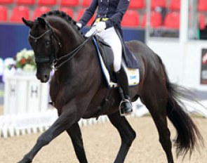 Edward Gal and Voice schooling at the 2013 European Dressage Championships. Voice was a Dutch team reserve horse for Herning :: Photo © Astrid Appels