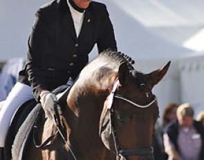 Janne Rumbough on her own Grand Prix horse Junior (by Gaucho III) :: Photo © Sue Stickle