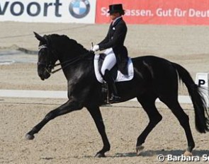 Australian Tanya Seymour on Dr. Doolittle (by Donnerhall x Lauries Crusador xx). The black appeared a bit ponyesque but he did sire on the best stallions competing in the 2011 Oldenburg Stallion Licensing
