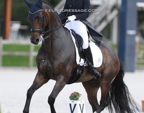 Susan Pape's Eclectisch (by Zenon x Olivi) had no oomph in the passage and piaffe today. Pity
