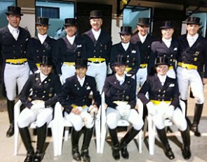 The 2007 European gold medal winning German team with a thumbs up from chef d'equipe Connie Endres