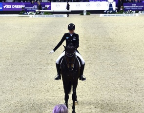 Svenja Kämper-Meyer leaves the arena on Amanyara M (by Ampere x Davignon), not happy with her 69.044% score