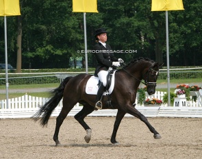 One to watch for the future: Charlott Maria Schurmann on the Luxembourg owned Ivar (by Desperado x OO Seven). This cute horse has a nicely engaged passage and showed a top canter half pass left. The walk was not so clear in the rhythm