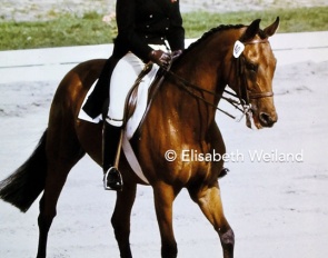 Lena Waldmann and Ilke Albers' 7-year old Scarlett O'Hara (by Scuderia x Laurentianer). The chestnut has stellar movements with the trot as highlight but was rushed too much through the programme in the finals. They scored 69.780%.