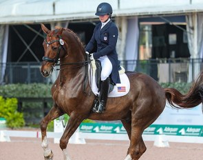 Andrea Winkeler on Powerpoint de Tamise, the third highest placed Belgian warmblood ever at the WCYH. The horse ranked 7th but could have finished even higher had it not been for some issues in the four flying changes