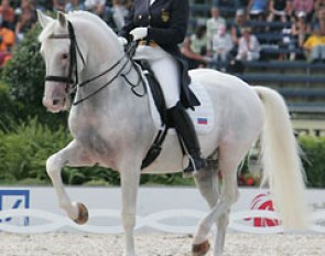Colombian Maria Ines Garcia on Derk Wieger de Boer's former Grand Prix horse Kupfermann