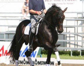 Belgian Wim Verwimp on the Danish warmblood Pari Lani. The bay gelding was bought by Anky van Grunsven as successor for Salinero. He went into training with Kittel and then disappeared. He's now co-owned by Verwimp