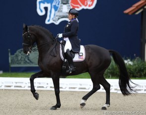 Shelly Francis raising the American flag as winner of the Grand Prix and Grand Prix Special