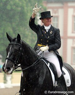 Eurodressage photographer Astrid Appels was on the scene at the CDI Wiesbaden on Saturday May 14 2005 to shoot the Grand Prix for Freestyle. It wasn't raining, it was pouring that day and only a few riders were fortunate to ride in the sunshine.