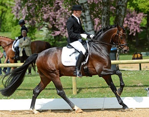 Two horses tied in first place in the 6-year old M-level test on a score of 8.3: Ralf Kornprobst aboard the Westfalian Balesteros (by Belissimo M) and Rudolf Widmann on the Hanoverian Depardieu (by Don Frederico). Stefanie Schüle and the Westfalian bred Solero (by Sunny Day) finished in third place with an 8.0 score.