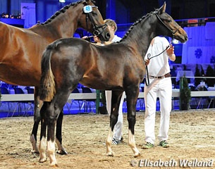 The second most expensive foal in the collection was the dark bay colt Fürstrubin von Worrenberg (by Fürstenball x San Amour x Rohdiamant) which sold for 16,000 CHF (13,200 euro). The same knock down price was achieved by the filly Catoona PZM (by Catoo x Contendro I x Escudo I).