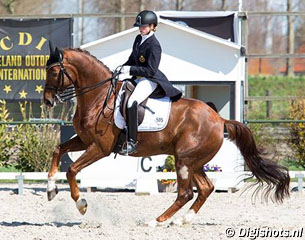 Belgian Liselot Dupont and her 11-year old Expression rode their third ever international competition at small tour level at the 2016 CDI Nieuw en St Joosland on 6 - 10 April 2016, and in a massive field of professionals the 26-year old stood her ground and finished on a brilliant third place in the Inter I kur at the end of the show.