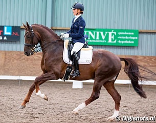In the 5-year old division, Adelinde and the Gelderlander Henkie (by Alexandro P) scored 91 points for the victory. The big mover outclassed Emmelie Scholtens on Hero (by Apache), who finished second with 84 points. Hero stood out with his ability to collect. Mara de Vries and Coby van Baalen's home bred Habibi DVB (by Don Schufro) were third with 81.6 points.