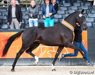 Jatilinda (by All At Once x Negro) became the 2017 KWPN Mare Champion on Friday 18 August 2017 at the KWPN Horse Days in Ermelo, The Netherlands. The black mare was a high scorer in the IBOP testing and excelled in hand in Ermelo.