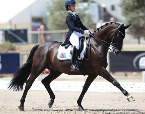 German Romy Allard and her 9-year old Oldenburg mare Summer Rose (by Sir Diamond x Rubinstein) were second after group one, and only dropped on spot on the score board after the second group. She achieved 74,000 % and got bronze, but the silver would have been the more rightful placing for her after a lovely test with a steady contact, balanced trot work and secure canter work.