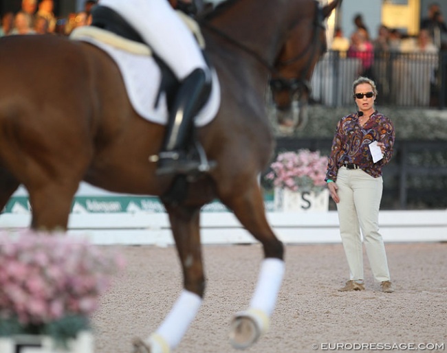 The Dominican Republic rider Yvonne Losos de Muniz was the third rider to go and to receive valuable advice from the queen of dressage.