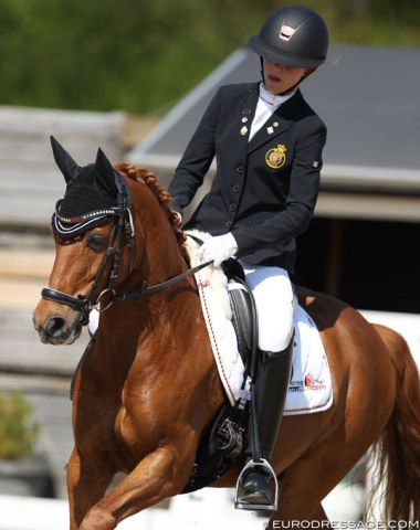 German Sophie Luisa Duen was also a debutant in Sint-Truiden with her first international start ever aboard Danica Duen's 10-year old Westfalian bred Del Estero (by Dance Star x Marsvogel). The 13-year old proved her mettle and worked her way up the board. They were seventh in the team test (70.476%), placed fourth in the individual test (70.495%) and won the kur to music on Easter Monday with 74.142%.