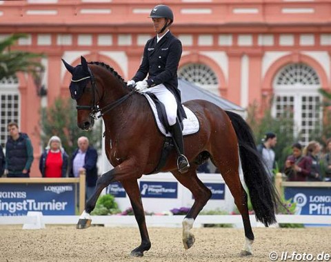 There were two winners in the 5-year old division. Lena Waldmann and Gestut Bonhomme's Oldenburg gelding Go Twitter (by Grey Flanell x Sandro Song) won the preliminary test with 8.68 points, while Sönke Rothenberger aced the Finals test aboard the Danish warmblood Kjaerholm's Fendi (by Franklin) with 8.82 points. Dutch Bart Veeze and the KWPN licensed stallion Imposantos (by Wynton) were in charge of the 6-year old division (9.40 and 9.28 points), while Dorothee Schneider and Sissy Max-Theurer's Oldenburg mare Sisters Act von Rosencarree (by Sandro Hit) dominated the 7-year old classes with 78.529% and 82.857%.