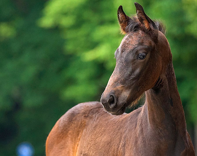 The gold medal winning colt Veneziano (by Vasari x Fidertanz x Sandro Hit) is an eye catcher in the collection of 25 foals offered for sale in the 4th Rhinelander Foal Auction at Castle Wickrath. The auction is online and bidding concludes on Sunday 26 July 2020.
