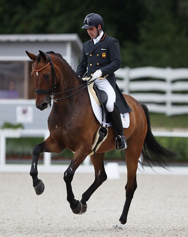 The contact with the bit was quiet and consistent, although Foco Loco W was quite rigid in his mouth. The piaffe could have had more impulsion and the horse regularly swayed to the right with the hindleg. The passage was bouncy, the half passes fluent. The highlights of the test were the big tempi changes and the super pirouettes.