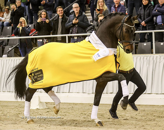 On the last day of the 2021 Hanoverian stallion licensing in Verden, Fidertanz was proclaimed Hanoverian Stallion of the Year 2021. After a very emotional ceremony in true stallion style, he did his lap of honour in front of the enthusiastic audience in the Niedersachsenhalle on 6 November 2021.
