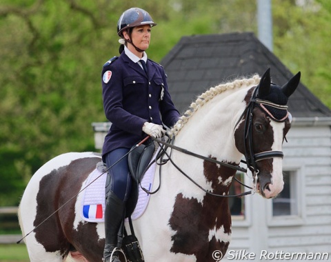 Probably the most striking looking horse came from the French team: The licensed Selle Francais stallion Bretzel des Feeries (by the Hanoverian Worldly), ridden by Peggy Touzard, got his pinto colour from his damn-sire Samber. Being light footed and well ridden, he formed an eye catching pair with his rider who competed in the dark blue uniform of the French national police. With two fourth and a fifth place they are certainly ones to watch out in future CPEDI.