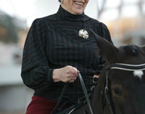 Libuse Mencke's Glücksruf II (by Dramatiker x Opernball) is not the most streamlined horse in his conformation but he showed good flow in trot and a big extended walk. In canter he was not entirely through in the bridle