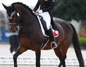 Isabell Werth schooling Lisa Müller's Stand By Me at the 2017 CDI Munich :: Photo © Petra Kerschbaum