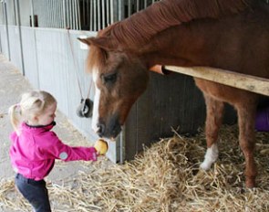 Former German pony team rider Svenja Meyer on Rania M. This horse has a very rhythmical piaffe-passage with super transition but overall could have more flexion in the joints.