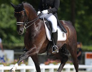 Dinja van Liere and Capri Sonne JR at the 2013 KWPN Stallion Licensing show in 's Hertogenbosch :: Photo © Dirk Caremans