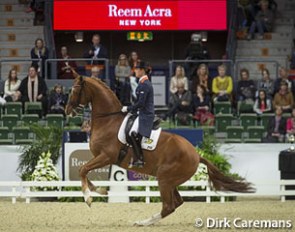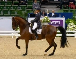 Nathalie zu Sayn-Wittgenstein's Digby is more interesting in nipping her hand than trotting energetically during the jog