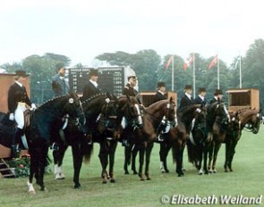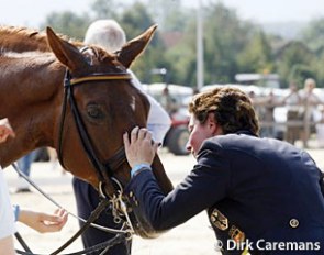 A much-talked-about pair in Neuss were pony rider Anna Abbelen and Henny Hennessy. This Gribaldi son, just bought by her family, is in training with Heiner Schiergen. This was Anna's first test with him, her first with a double bridle ever, and they won.