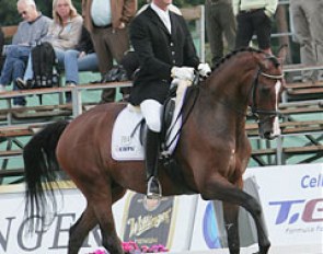 Christoph Koschel pats "Pepe" (= Donnperignon) after their freestyle ride