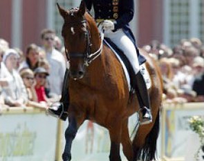 Isabell riding her fourth Grand Prix horse Polano, who is owned by K. Dörn