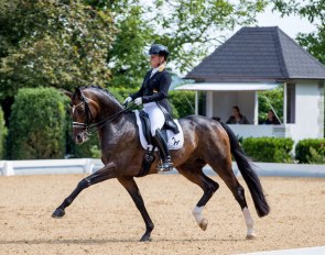 Kristina Bröring-Sprehe riding her first CDI in 13 months. Here on rising hope Saphira Royal