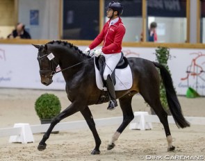 Elena Sidneva rode Fuhur in one of the most correct frames of all riders with a long neck, poll as highest point. Her piaffe-passage was also one of the best, but she lost the horse a bit in the canter with too long reins