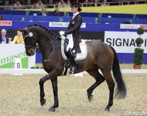 Big disappointment for Denise Nekeman. After winning individual silver in the Short Grand Prix, her Boston threw the tongue over the bit and they had to retire