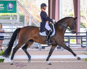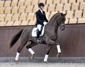 Belgian Larissa Pauluis on the Westfalian Valentin (by Vitalis x Fidermark). The stallion is a big prancey with his front leg but they showed a good, solid test. Will be exciting to see where they will go to in the future