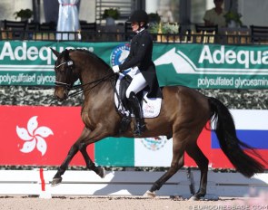 Maybe not the scopiest and most supple mover, but definitely one of the best trained horses in the field: Sisters Act vom Rosencarree (by Sandro Hit x Royal Diamond), ridden by Dorothee Schneider and owned by Sissy Max-Theurer