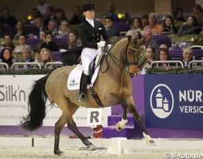 With a 75.128% in the Grand Prix Special, Charlotte Fry and Dark Legend most likely rode themselves on the British team for Rotterdam. Fry is very capable in steering the tall black through the test. Overall the horse needed to relax more and swing in the back.