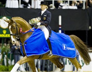 Hana Vasaryova, from the Czech Republic, placed 23rd in the consolation class with 6.96. The chestnut Westfalian mare is by Laudabilis x Beltain.
