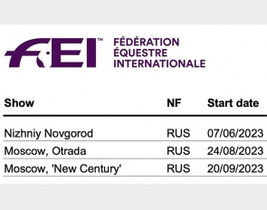 Three CDI's in Russia, Two in Belarus on 2023 FEI Calendar - Shows Not Yet Approved