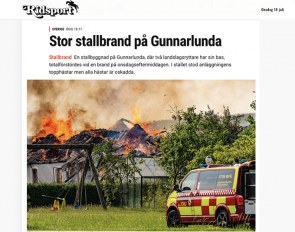 Fire Destroys Stable Building of Gunnarlunda Dressage