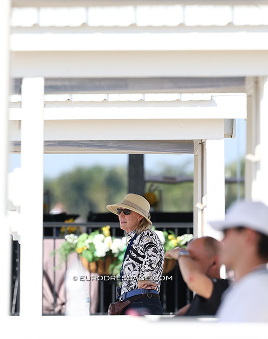 Three trainers in a row, Charlotte Bredahl at the far end
