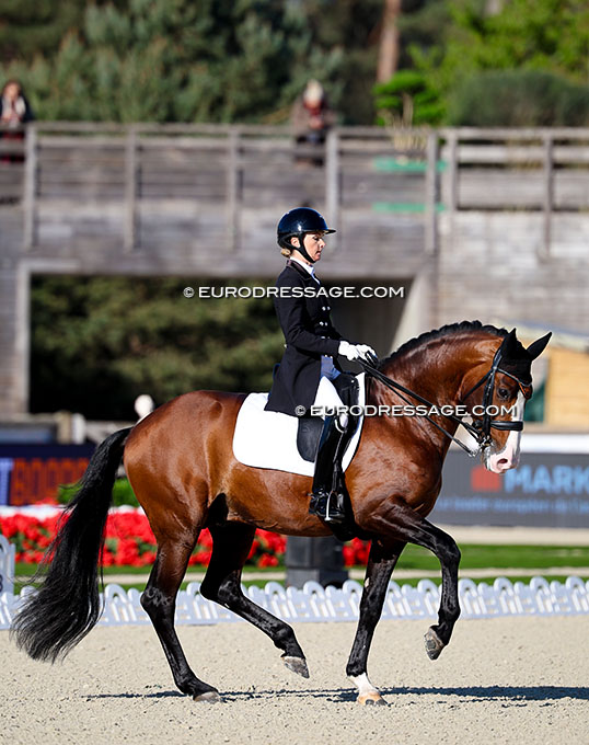 Grete Ayache's Lusitano Nectar Plus (by Acucar do Pinheiro) was too hot to trot and retired from the test