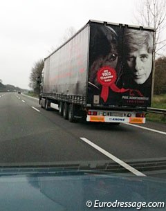Paul Schockemöhle's face on the back of one of his lorries :: Photo © Astrid Appels