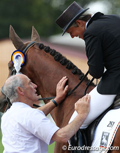 Damon Jerome's breeder Willi Schneider congratulates Uta