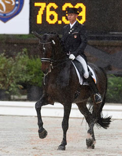 Steffen Peters overcomes the rain and wins the Grand Prix at the 2011 U.S. Dressage Championships :: Photo © Sue Stickle